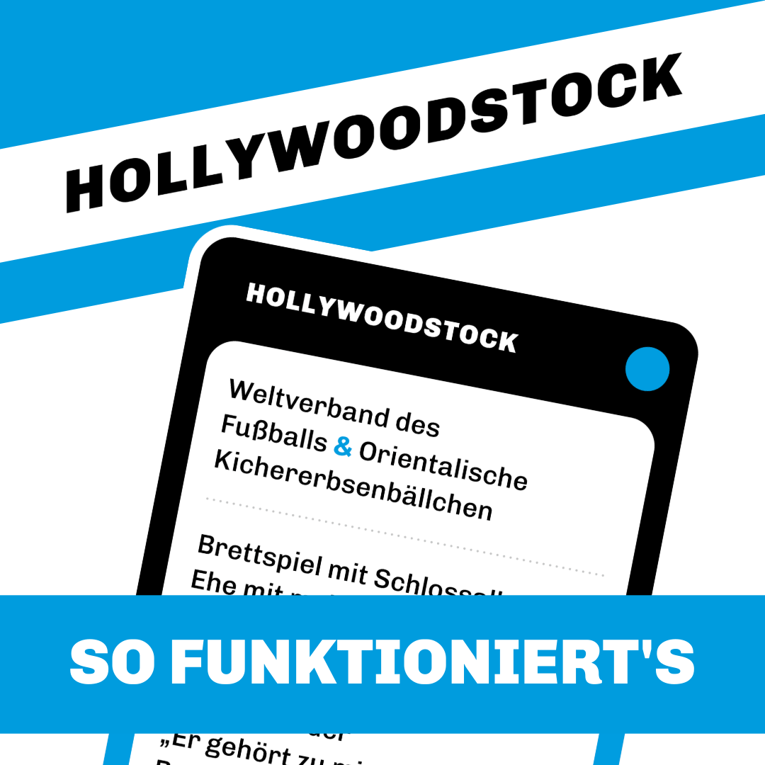 HOLLYWOODSTOCKDie Antworten zweier Fragen verschmelzen zu einem neuen Wort. Das Ende der ersten Antwort ist der Anfang der zweiten. Setze sie zusammen und nenne die neue Wortschöpfung als Lösung.