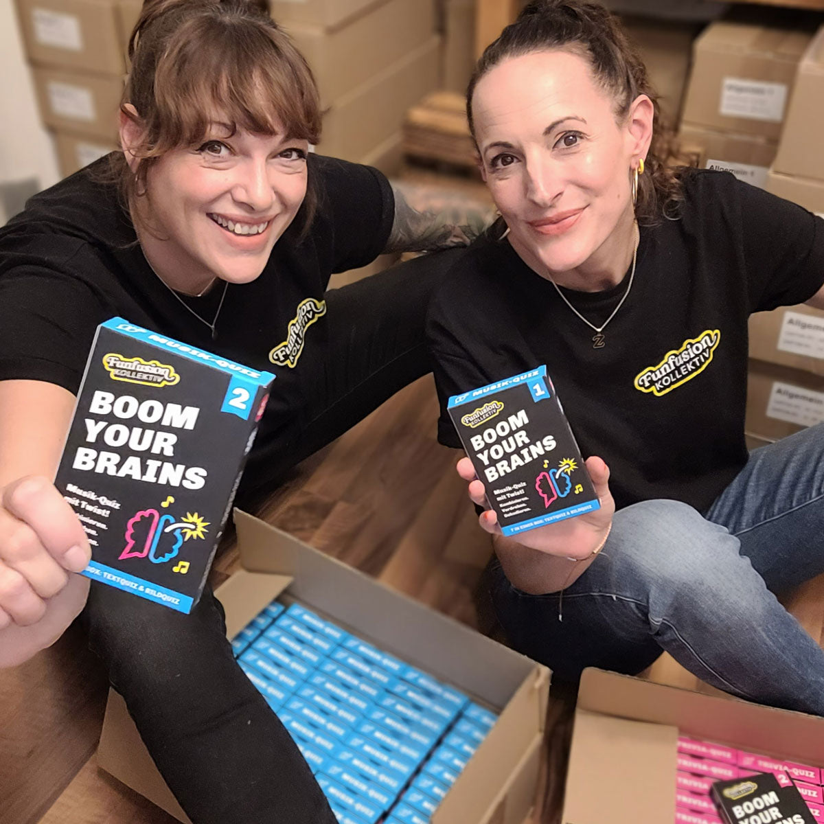 Also gründeten wir das Funfusion Kollektiv zur Entwicklung von etwas anderen Quiz-Spielen. Wir beide vereinen damit das Beste aus unseren Welten: Veras gestalterische Expertise und ihre Erfahrung aus der Zusammenarbeit mit Kunden aus den unterschiedlichsten Branchen als selbstständige Grafikdesignerin treffen auf Utes Strategie- und Marketing-Know-how aus leitenden Positionen. Wir haben unser professionelles Fundament und unsere Leidenschaft gebündelt, um euch Boom Your Brains zu geben.