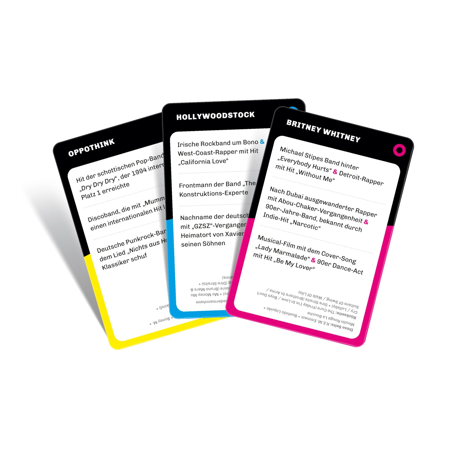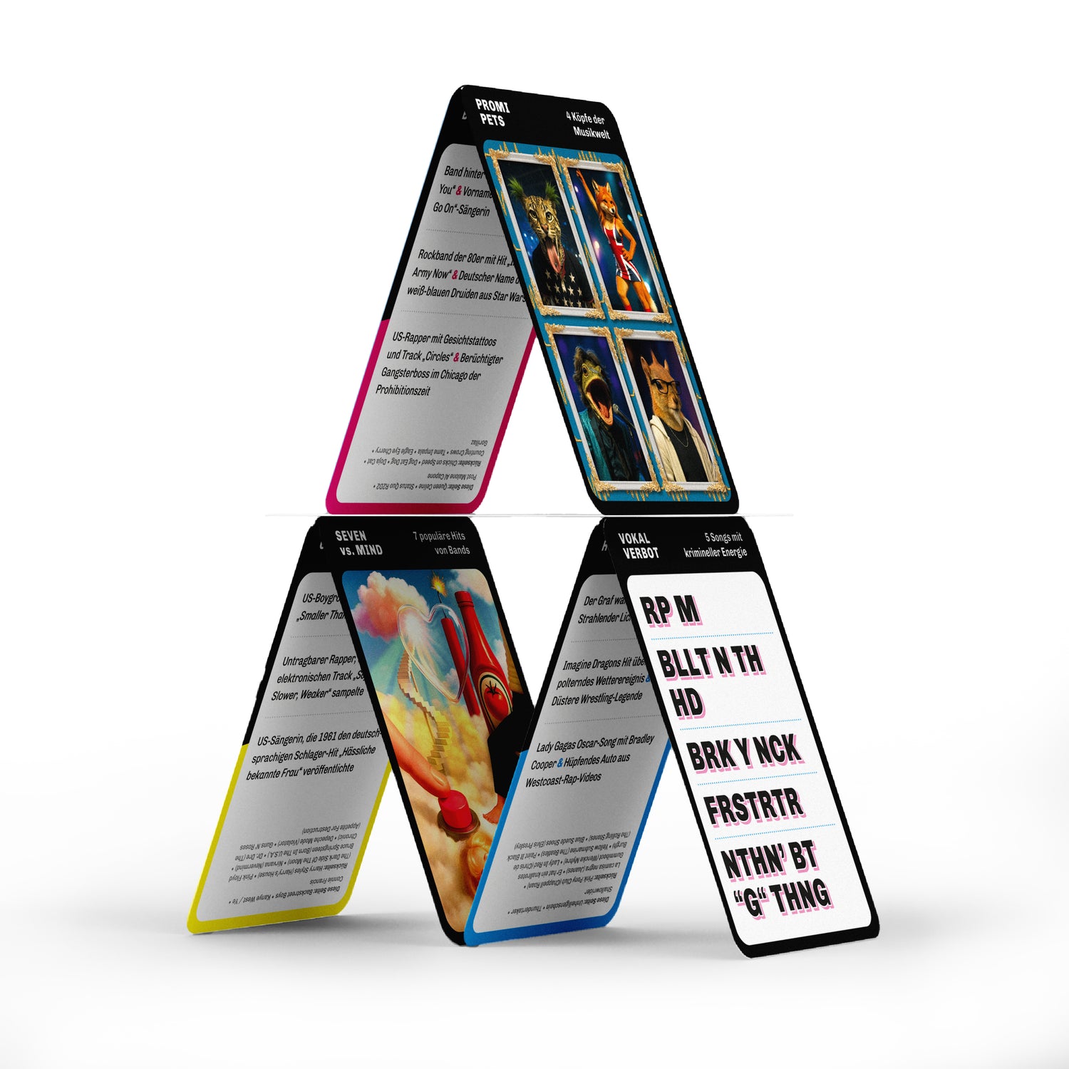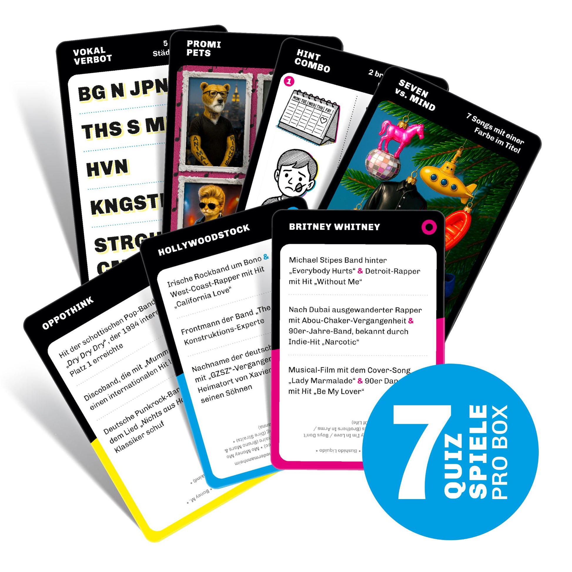 Der erste Soundcheck für dein Brain! Musik Edition 1 ist euer Pocketquiz für alle, die eine volle Playlist im Kopf haben. Wir mixen Acts & Bands, Songs, Alben und die ganze Palette von Genres und Epochen mit sieben kreativen Formaten zu einem Aha!- und Haha!-Erlebnis. Und das Beste: Wir haben Musik-Trivia mit Allgemeinwissen gemixt, um euch zusätzlich herauszufordern!