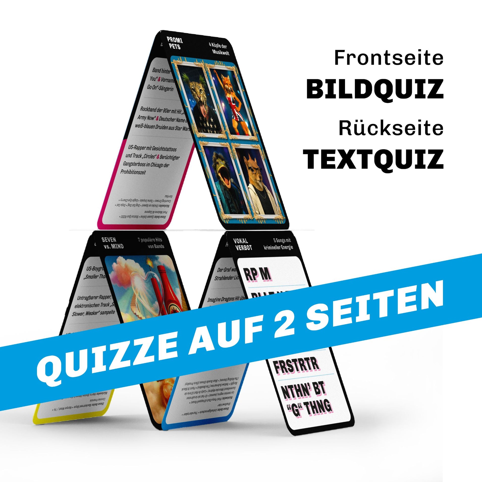 - 51 doppelseitige Quiz-Karten mit Bild- und Textquizzen