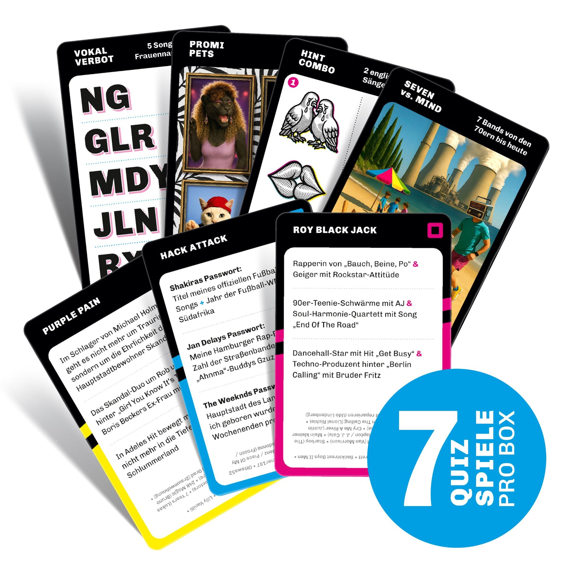 Die zweite Runde für deine Wissens-Playlist! Musik Edition 2 liefert noch mehr Pocketquiz-Spaß für alle, die ihre Musik-Brains herausfordern wollen. Diese Box bringt drei völlig neue Text-Quiz-Formate mit – ideal zum Kombinieren und Erweitern deines Boom-Universums! Wir mixen Acts, Alben und Genres mit sieben kreativen Formaten und dem speziellen Mix mit Trivia.